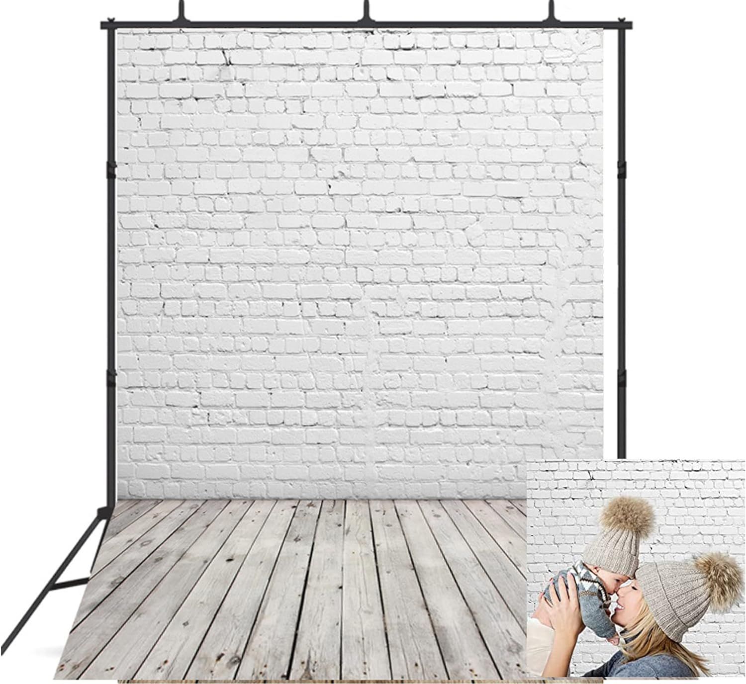 Das Hintergrundsystem besteht aus zwei Stativen und einer Stange in der Mitte, woran die Leinwand aufgehangen wird.